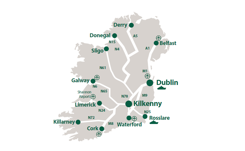 - 2 hours and 10 minutes from Shannon Airport by Car